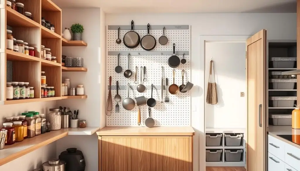 These ideas not only enhance organization but also improve your kitchen’s workflow. By incorporating sliding shelves and wall-mounted solutions, you can create a seamless, functional space that reflects your personal style.