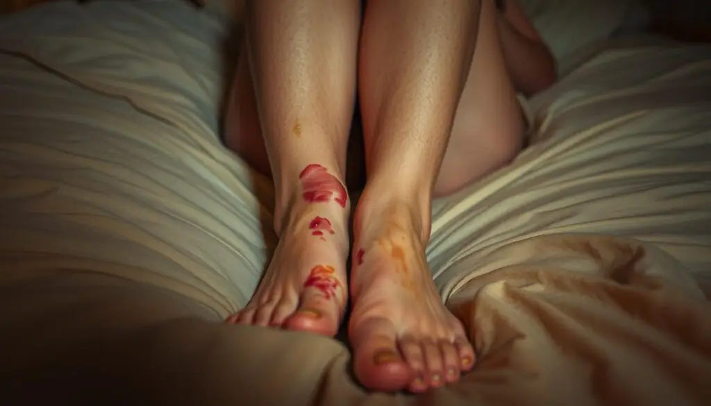 It’s key to know how cholesterol impacts blood flow for better leg health. The signs of high cholesterol might be subtle, but spotting them early is crucial. Look out for leg pain at night, numbness, and tingling in your legs. These symptoms can get worse at night because of less activity, which worsens poor circulation.